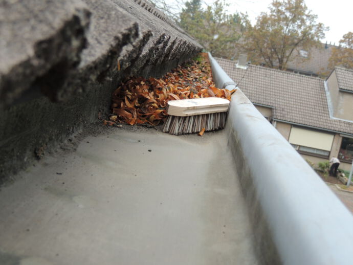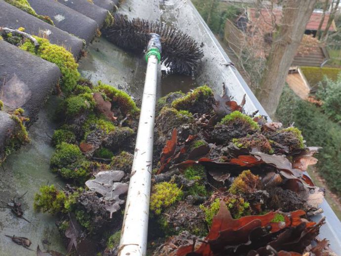 - Spoelen van de dakgoten en wegwrijven van achterblijvend vuil.
