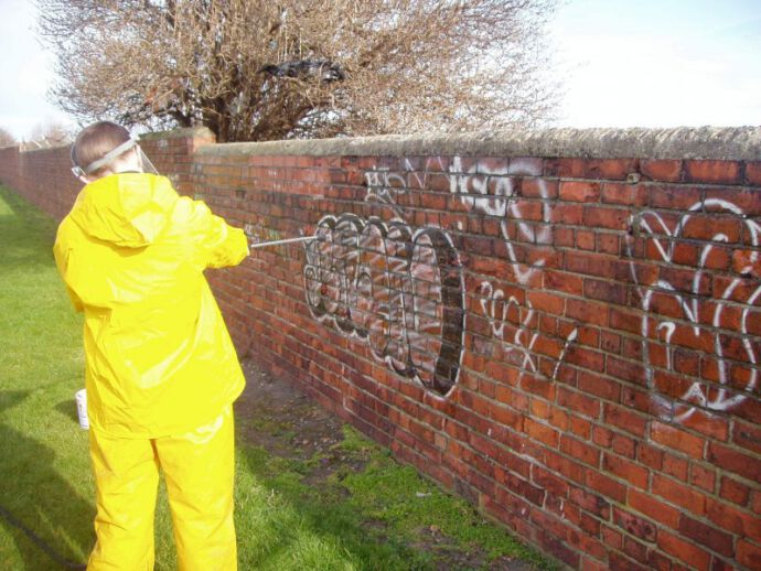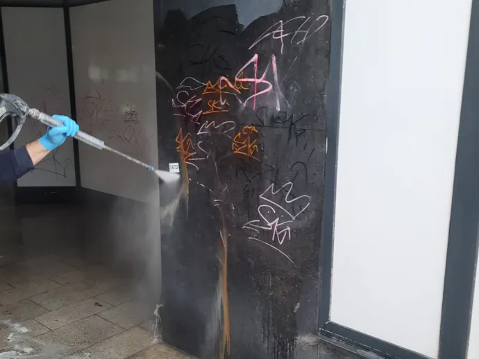 Graffiti verwijderen kan op verschillende manieren. Wegstralen, hogedrukreiniging, strippen, ...: de te gebruiken methode is afhankelijk van de te reinigen ondergrond en specifiek met de 'pijngrens' van deze ondergrond. We adviseren je met plezier welke techniek het beste bij jouw project past. Vraag je offerte op maat aan!