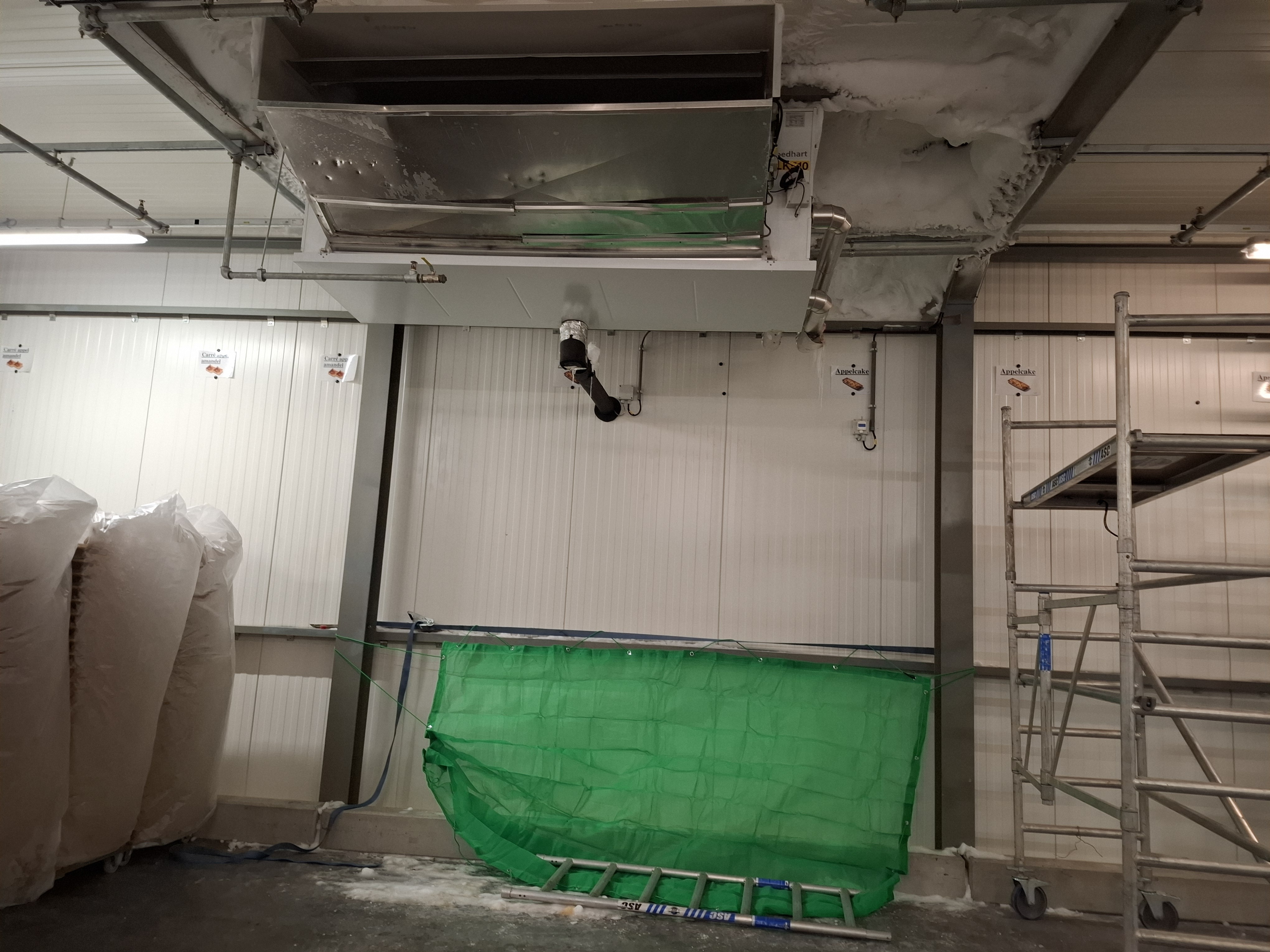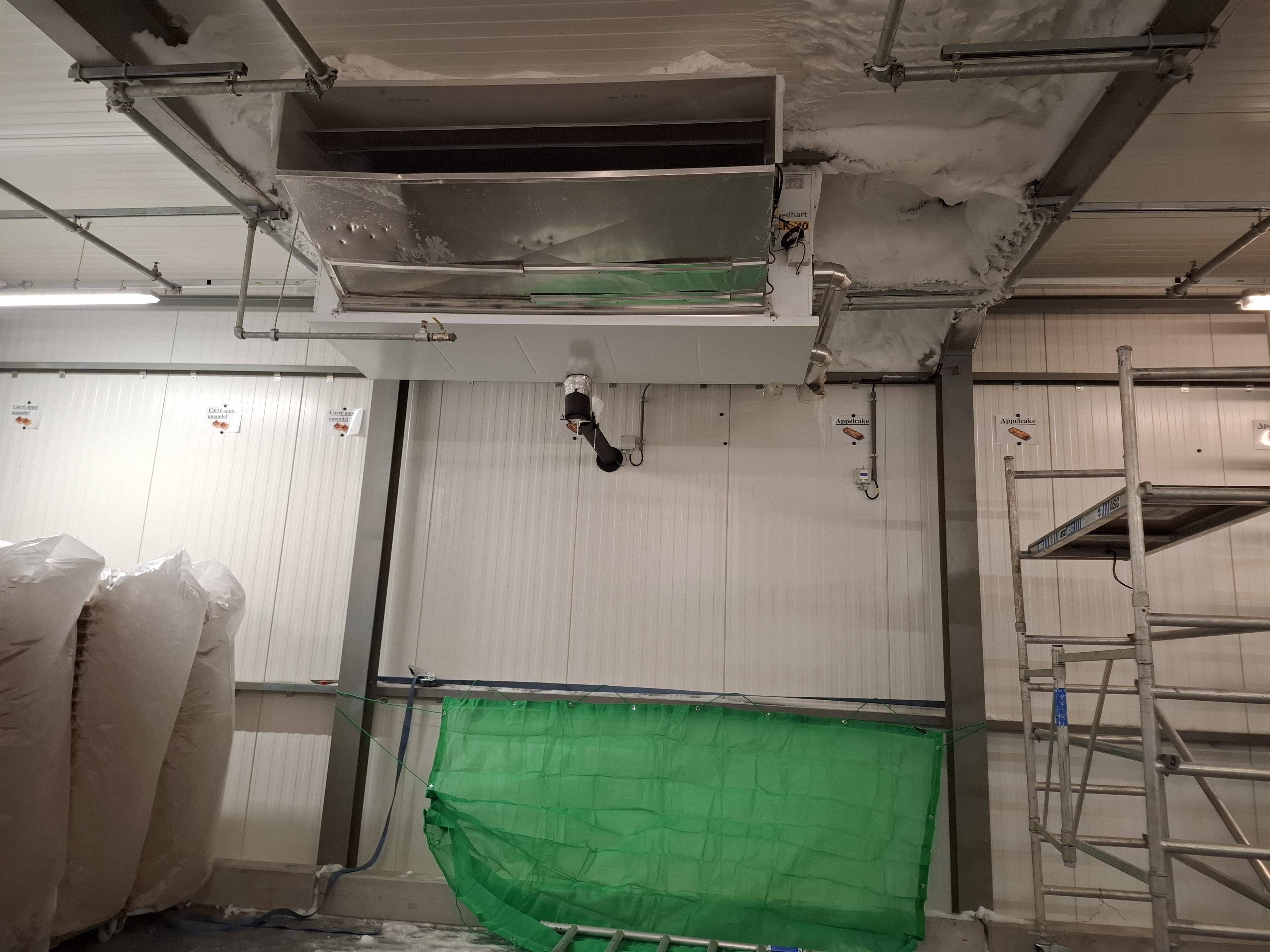 IJsophopingen rond koudebruggen, toegangsdeuren, verdampers en ventilatoren kunnen leiden tot: