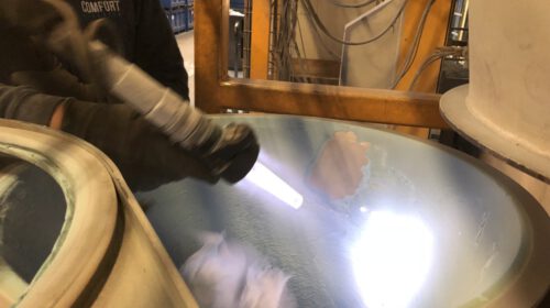 - Reiniging van de bak/moffel & droogoven (interieur en exterieur) – techniek droogijsstralen – machinaal – manueel + detail op aanzuigkanalen in bak/moffel en/of droogoven