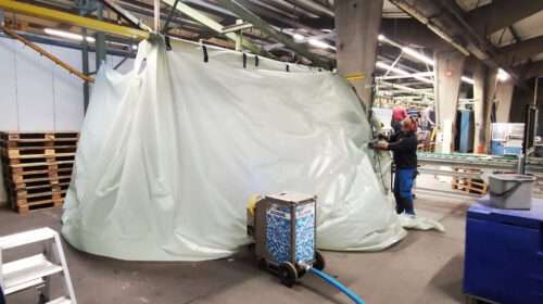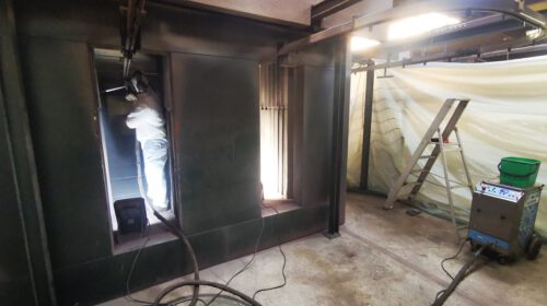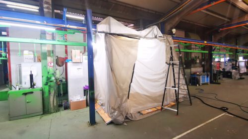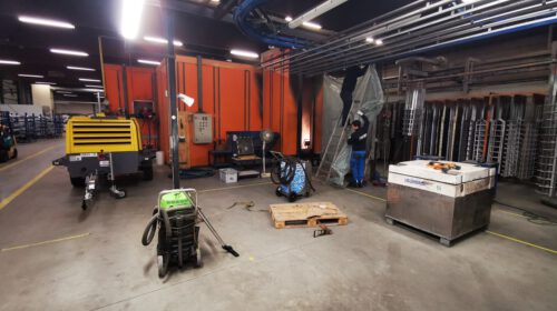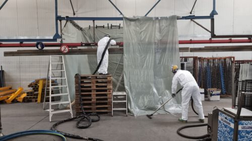 - Machinale reiniging plafond-, muur- en vloerdelen met inbegrip van het exterieur van de installatie na uitstoot poederlak, kortom 3 dimensionaal reiniging van het interieur van de poederlakhal