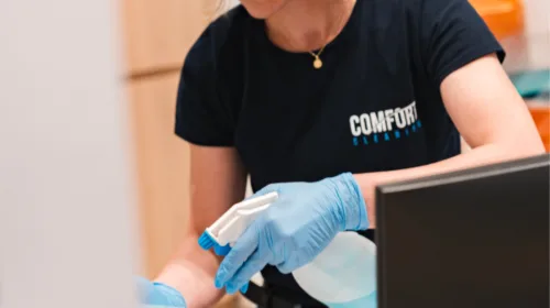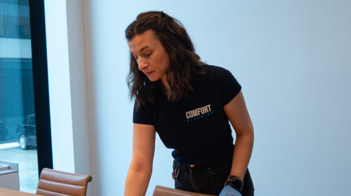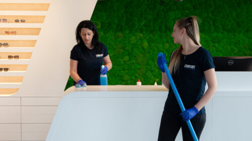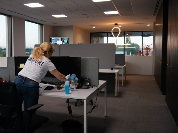 - Comfort Cleaning werkt met eigen professionele schoonmaakproducten en materiaal die de medewerkers telkens terug meenemen. Zo blijft er niets in de weg staan in je bedrijf.