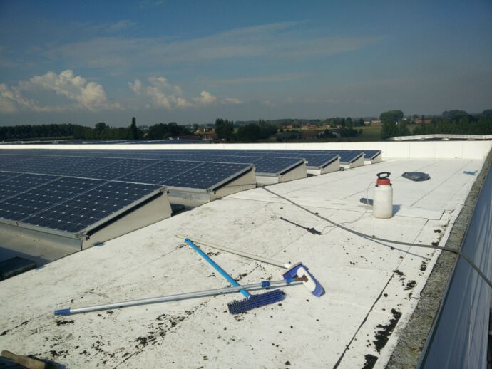 Jaarlijks je zonnepanelen reinigen is een goed idee. Zelfs bij een lichte vervuiling daalt de rendabiliteit van je zonnepanelen al. Dankzij reiniging met osmose water krijg je een snel, streeploos resultaat en dat zonder (schadelijke) schoonmaakmiddelen. Is er sprake van zware vervuiling? Dan kiezen we eerder voor een stoomreiniging onder lage druk. We adviseren je met plezier welke techniek het beste bij jouw project past!