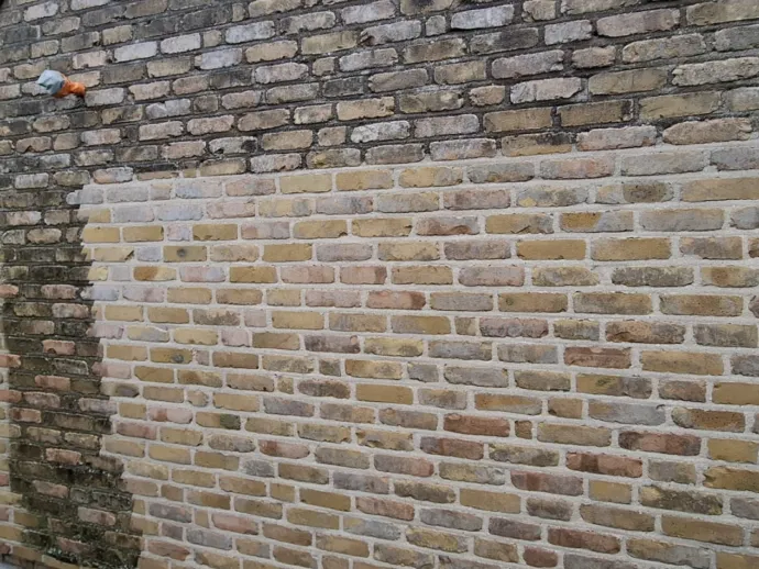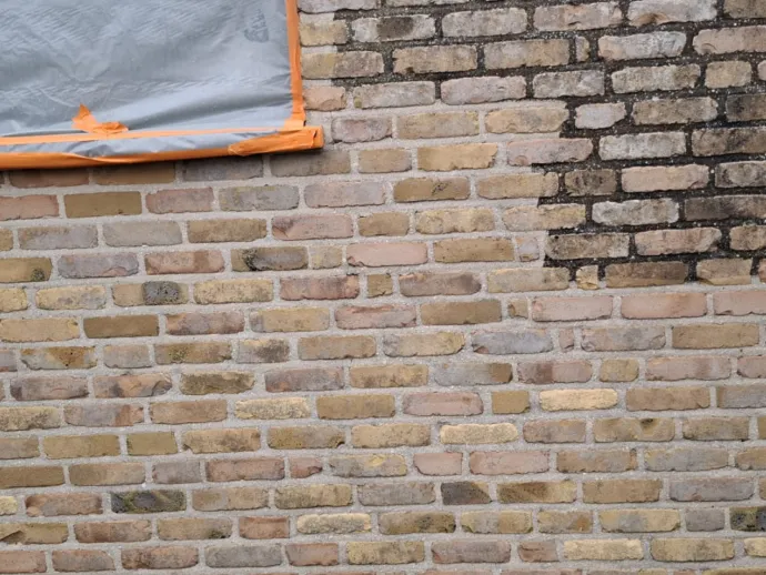 4️⃣ Nabehandeling van de gevel waar men kan kiezen tussen een jaarlijkse biologische behandeling op basis van enzymen of een meer intensieve, eenmalige siliconenbehandeling / hydrofuge