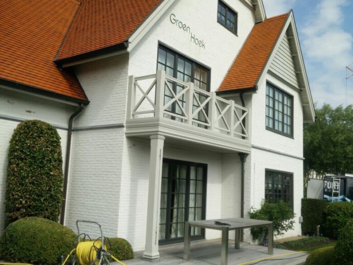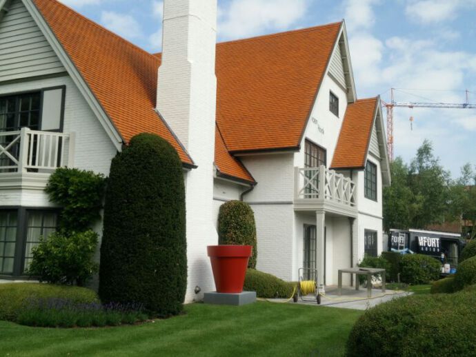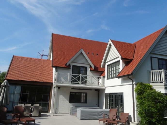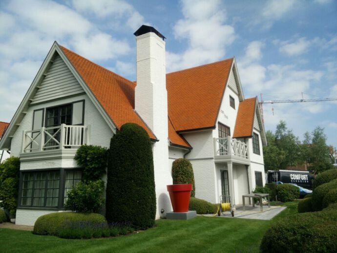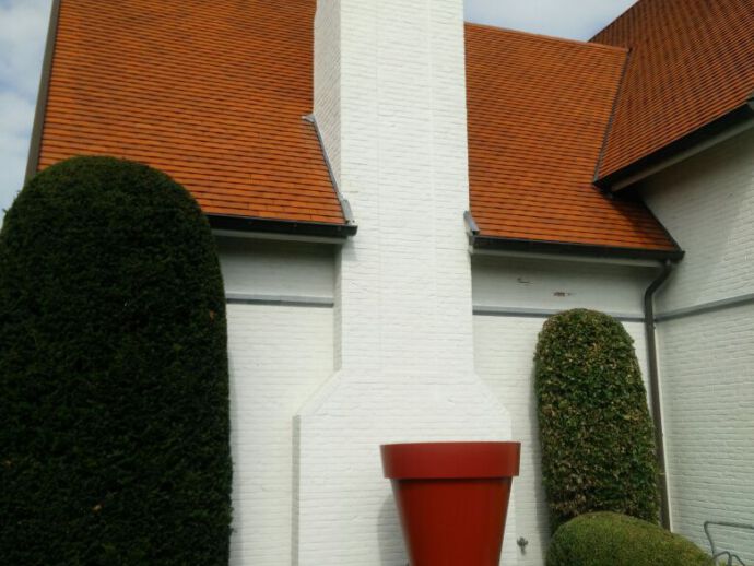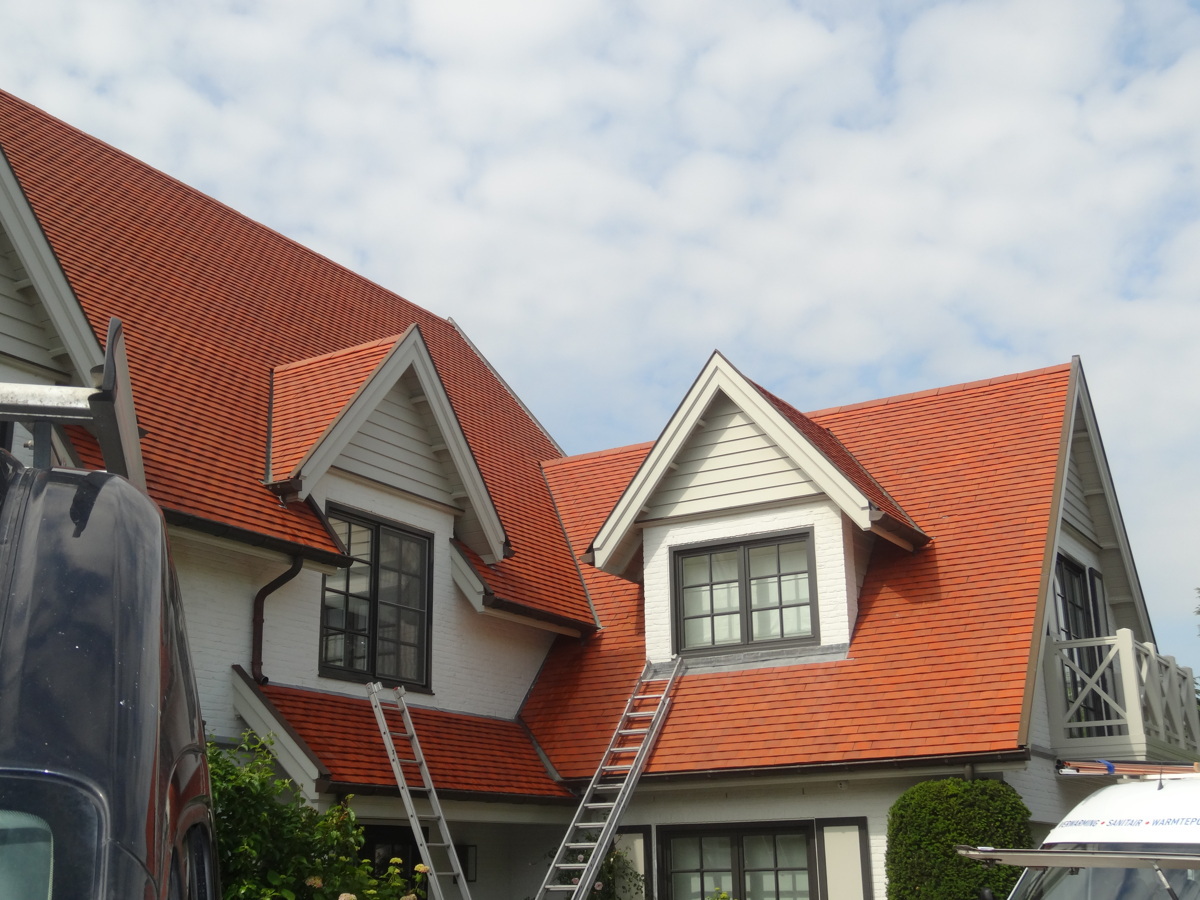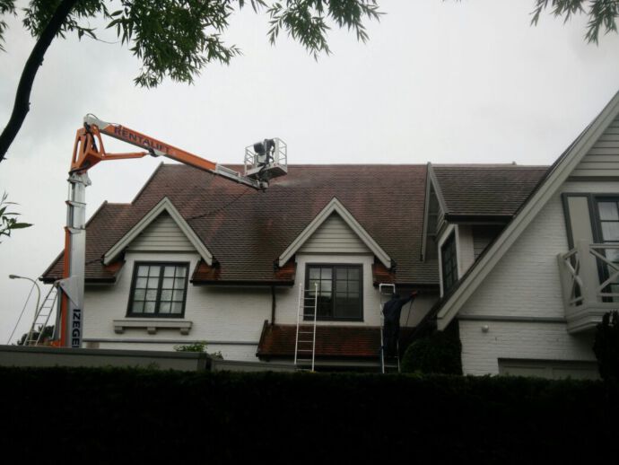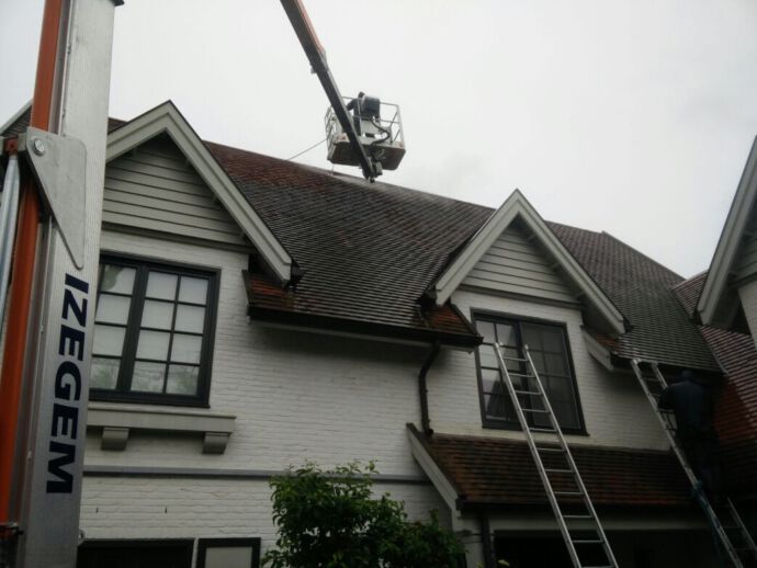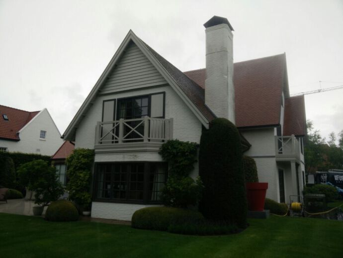 Bij dit project aan de kust werd een complete dakreiniging en gevelreiniging uitgevoerd. Omwille van de broosheid van de Franse tegelpan werd hier geopteerd om te werken met een spinhoogwerker, dit om schade aan de pan door betreding te vermijden.