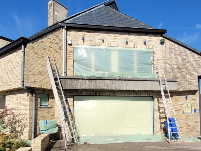 2️⃣ Gevelreiniging onder stoom en lage druk met als voorbehandeling een lichtzurende gevelreinigingsgel