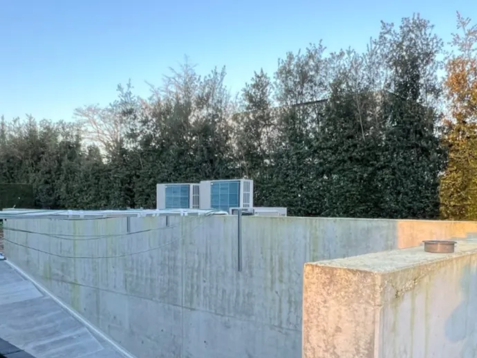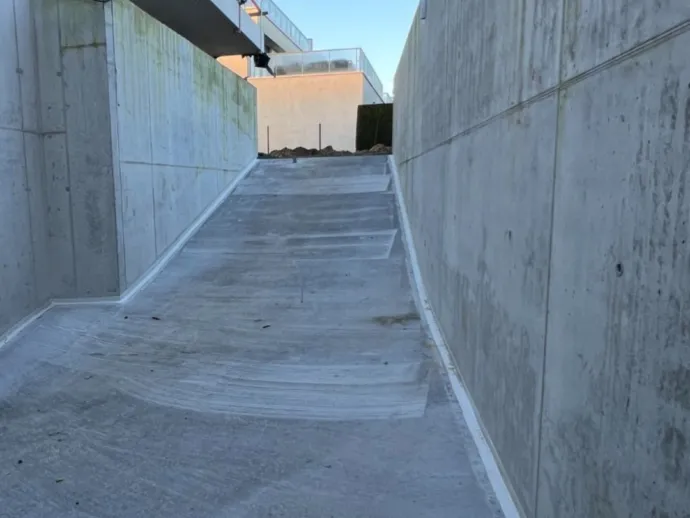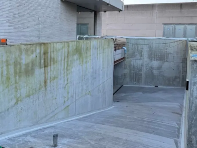Comfort Cleaning heeft de betonwanden van deze parkeergarage grondig gestoomd, waarbij algen en vervuiling langs de muren werden verwijderd.