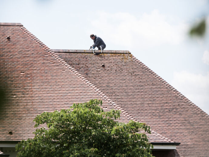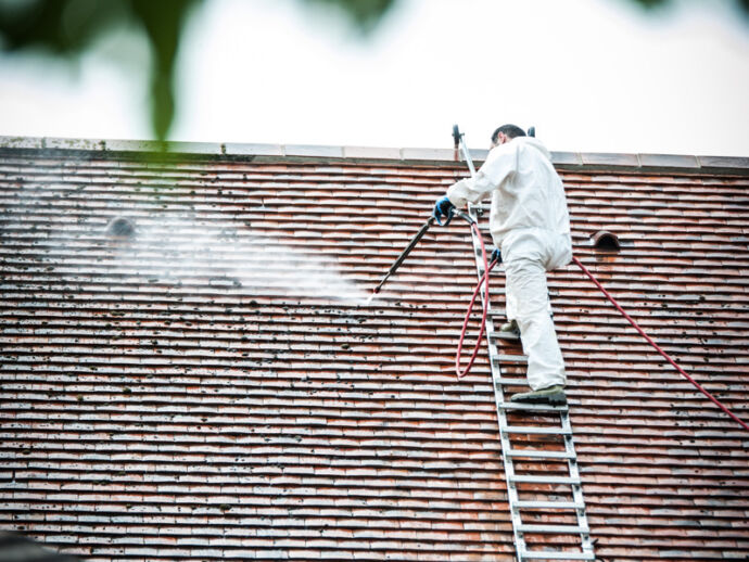 Dak ontmossen onder stoom met lage druk, Franse tegelpan