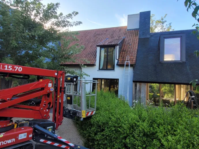 7️⃣ Finale reiniging van buitenramen, deuren, gevel, dakgoten en naspoelen van oprit, wandelpaden en terras