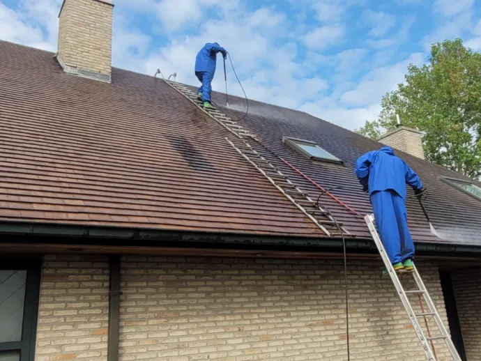 Woningen gelegen in een groene omgeving verkrijgen sneller mos-, alg-, en korstgroei, laat dit niet te ver evolueren. Door je dak te reinigen voorkom je tijdig schade! Na het ontmossen kan je toekomstige aanslag op een betaalbare en biologische manier voorkomen.