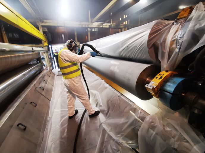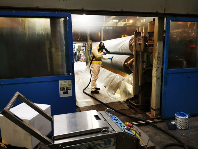 Ontdek hoe we de embosswals zonder schuren ontdeden van vervuiling d.m.v. reiningstechniek droogijsstralen.