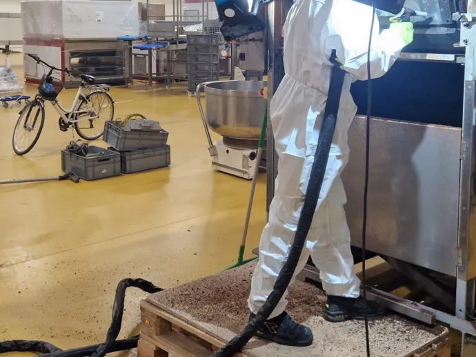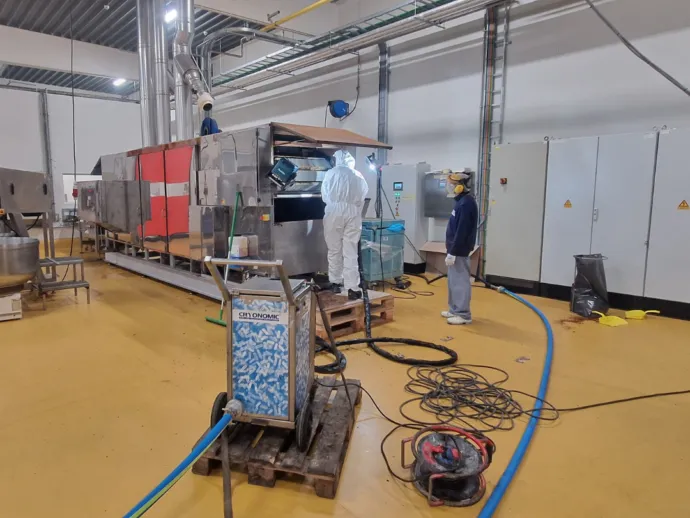 Bij deze methode worden CO₂-ijskorrels van -79 °C met hoge luchtdruk op het vervuilde oppervlak gericht. Dit zorgt ervoor dat de vervuiling door de plotselinge afkoeling krimpt en loskomt.