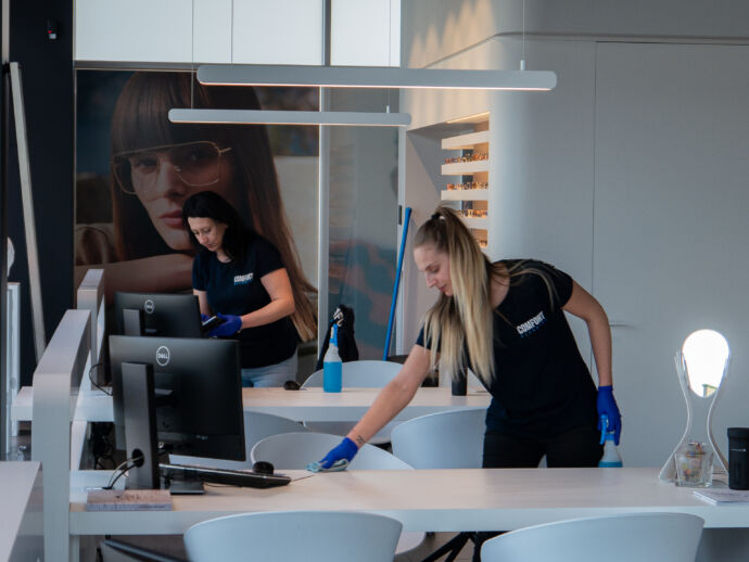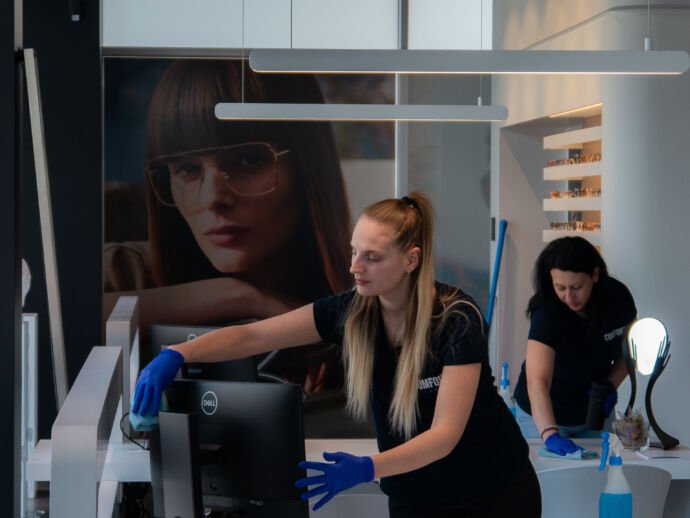Periodieke schoonmaak van de winkel bij Zeis Vision Center - Optiek Jo in Zulte.
